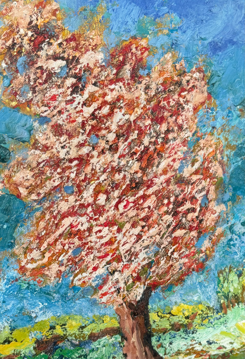 De vibratie door de wisselwerking van kleur en licht en de wat verweerde structuur lijken belangrijker dan het voorgestelde zelf dat elke vorm van overladen schuwt.