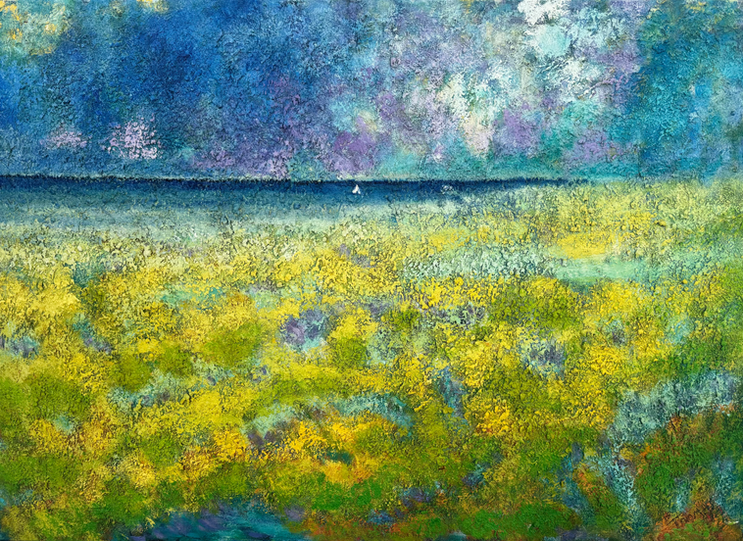 In zijn landschappen gaat het om de weergave van het essentiële om het wezen van wat als eenheid van lucht, licht , ruimte en atmosfeer in het landschap aanwezig zijn.